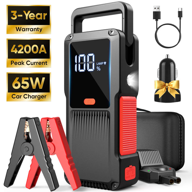 γ2025 Newγ4200A 27000mAh Jump Starter | 10L Diesel & All Gas, 65W Car Charger & QC3.0 Fast Charge, GCZ 12 V Jump Box with LED Display