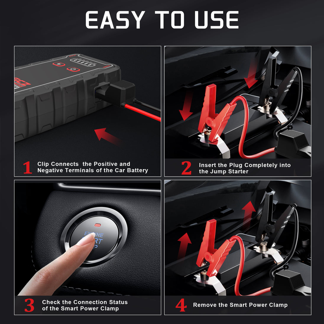 ✔ Start Dead Batteries in Seconds – Up to 2000A peak current