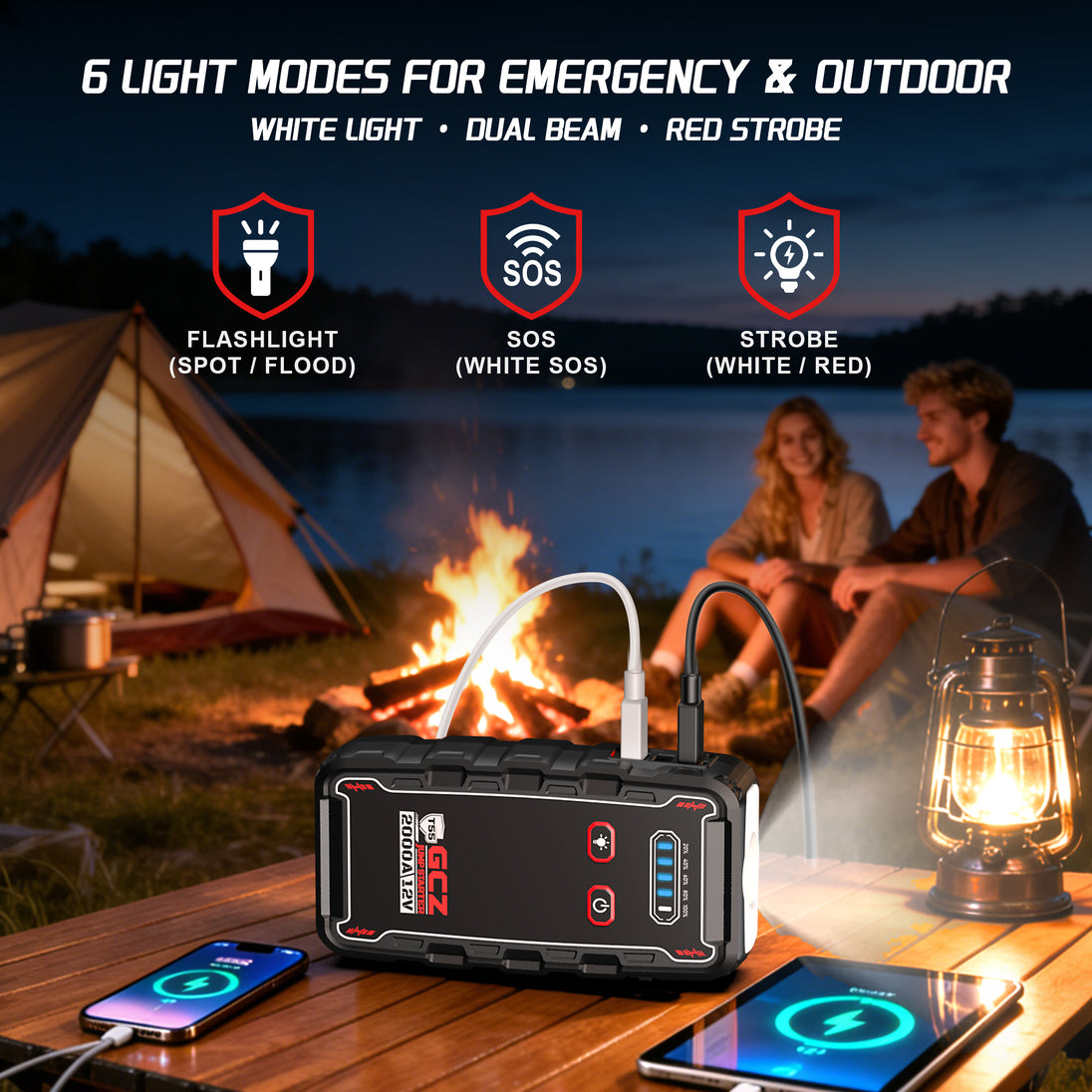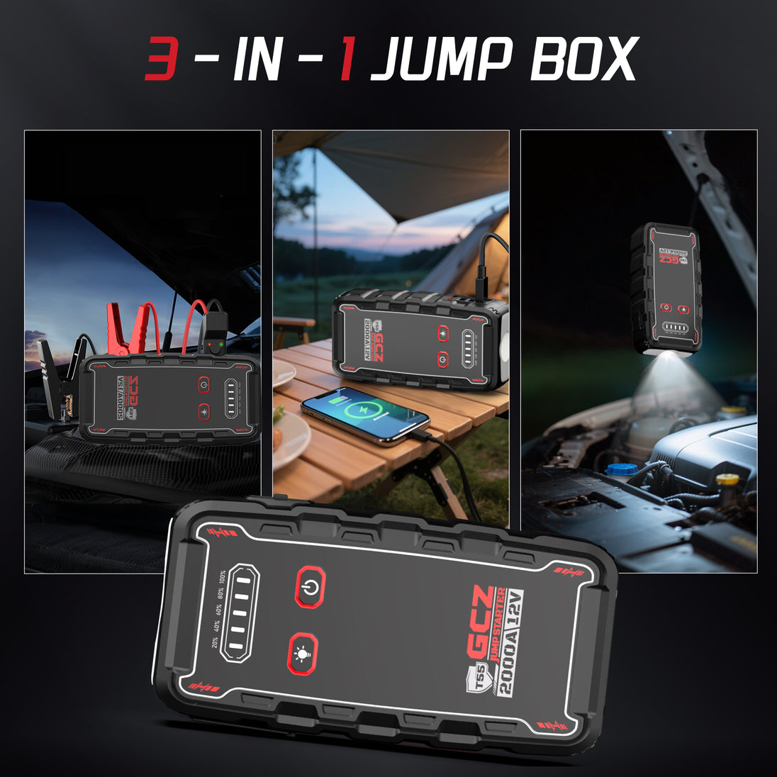 Never get stranded again. The GCZ Portable Jump Starter is designed to give you complete peace of mind on the road. Whether your car battery dies or your tires lose pressure, this compact device handles it all.
